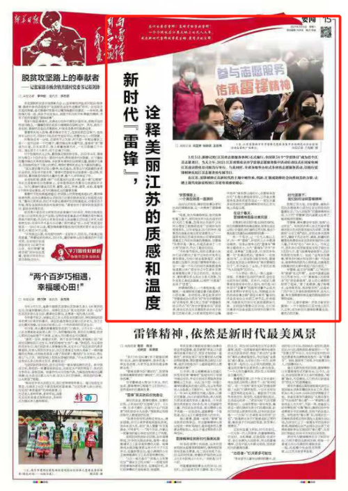 在江蘇,雷鋒精神正在新時代的土壤中被傳承、創(chuàng)新,匯聚成助推社會向善向美的力量,讓踏上現(xiàn)代化新征程的江蘇更有質感更暖心。