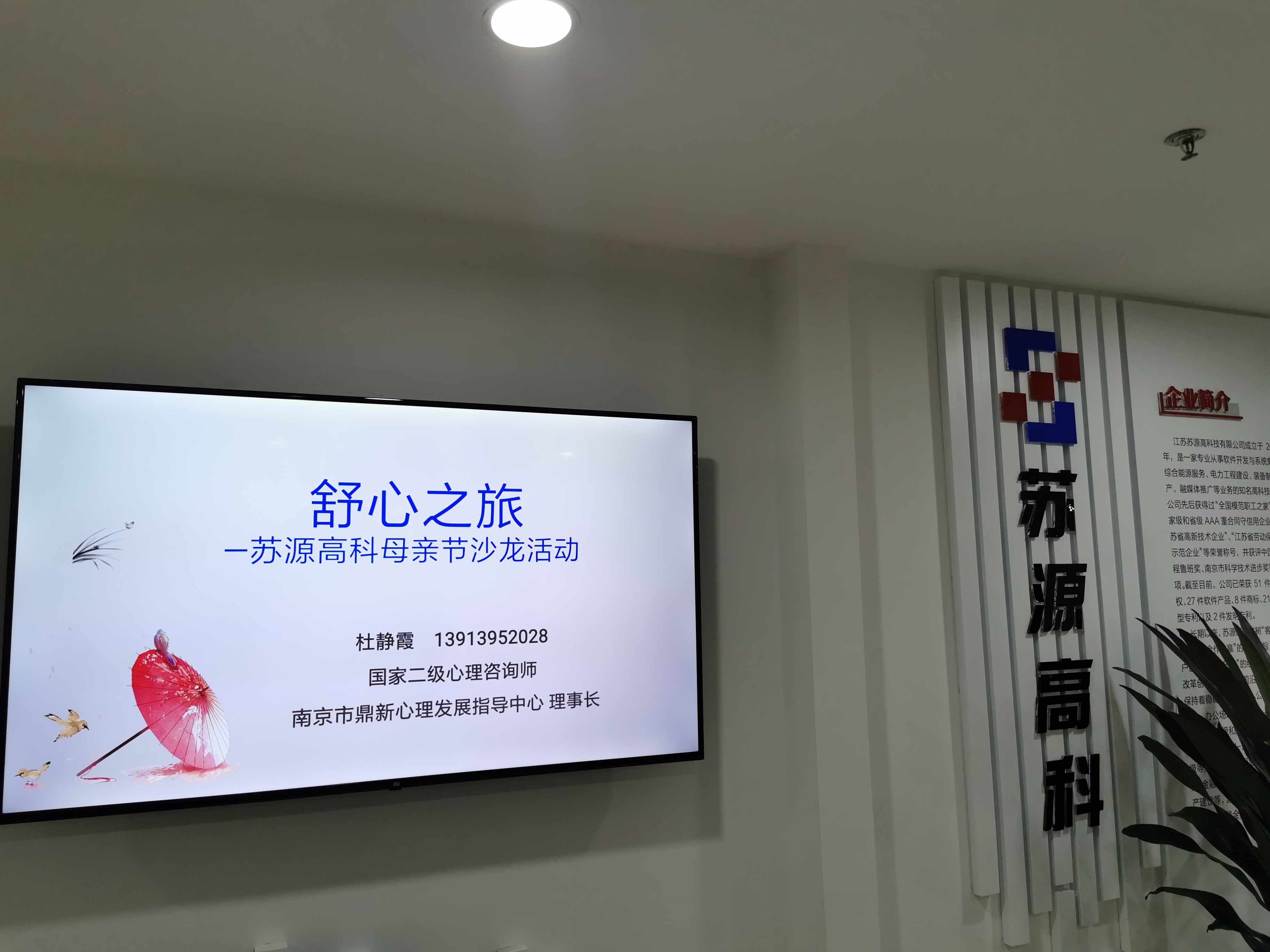 為緩減女職工心理壓力,培養(yǎng)女性自尊、自愛、自信、自強(qiáng)的精神風(fēng)貌。在“母親節(jié)”即將到來之際,公司黨支部攜手工會聯(lián)合開展 ——“關(guān)愛母親,心理減壓”舒心之旅活動。旨在讓女職工更好地了解自己當(dāng)前的壓力指數(shù),在專業(yè)老師的帶領(lǐng)下分析壓力主要來源, 了解自我減壓方法,體驗放松。塑造陽光心態(tài),打造幸福生活,蘇源高科祝天下所有的母親,節(jié)日快樂!永遠(yuǎn)幸福!